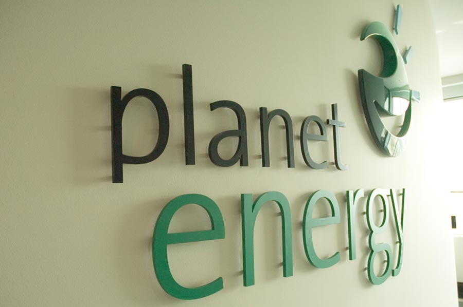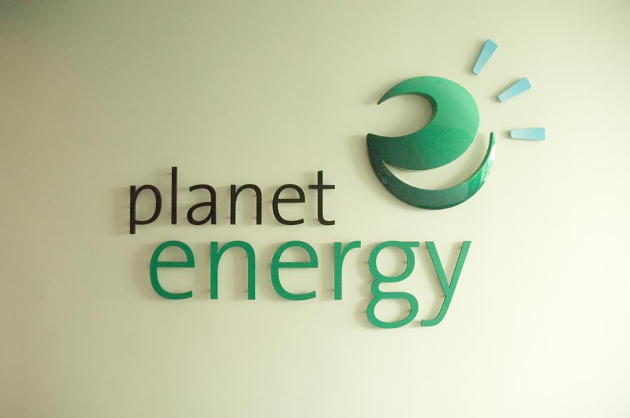 Scope: Soheil Mosun Limited was contracted to fabricate and install this custom lobby sign for Planet Energy Inc.