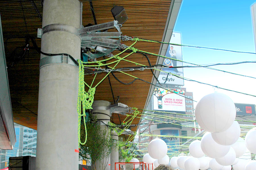 Scope: Soheil Mosun Limited was contracted to fabricate and install eleven (11) sets of double ring steel column brackets to serve as rigging for a specialized and suspended balloon lighting system to be used as part of the Luminato® festival in Toronto which ran from June 6-2008 until June 15-2008.