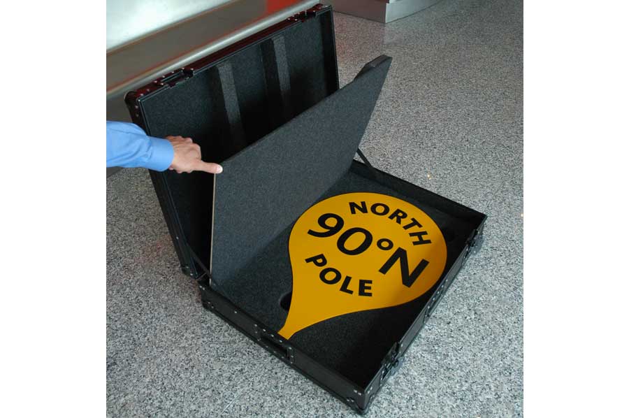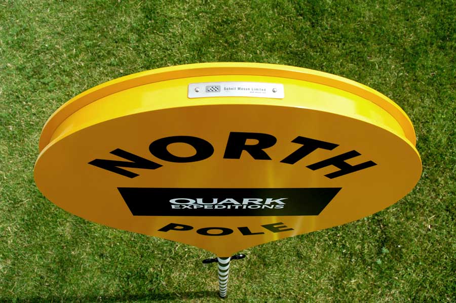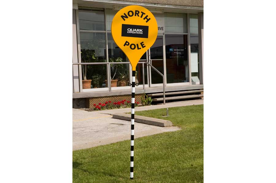 Scope: Soheil Mosun Limited was contracted to fabricate a portable, plantable North Pole marker sign for Quark Expeditions. The sign will be used as a marker for the exact position of the North Pole during expeditions to the Arctic. The sign fits into a durable flight case when not in use.
