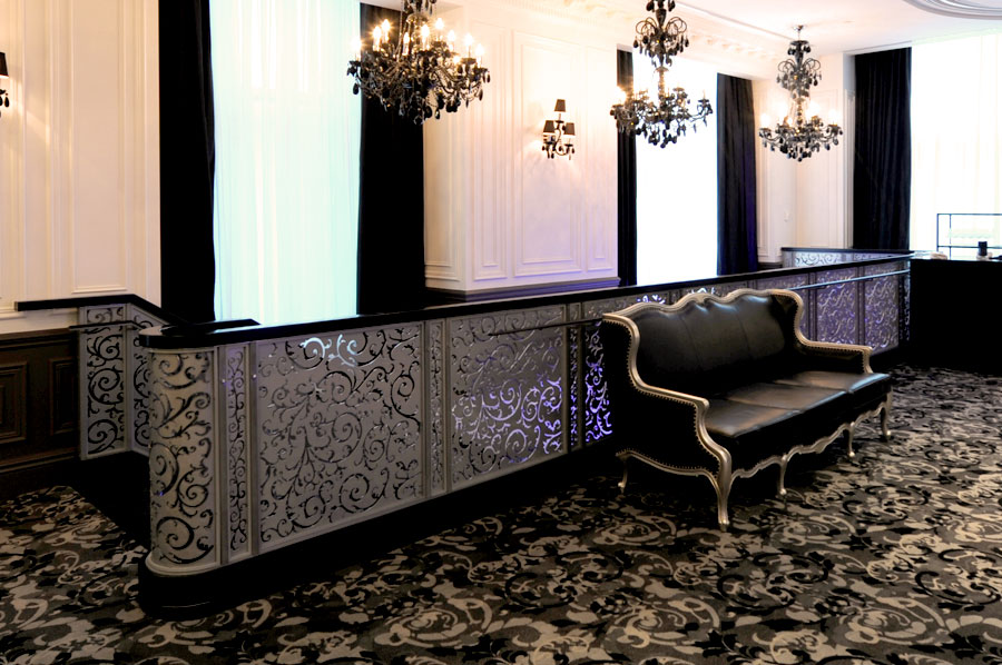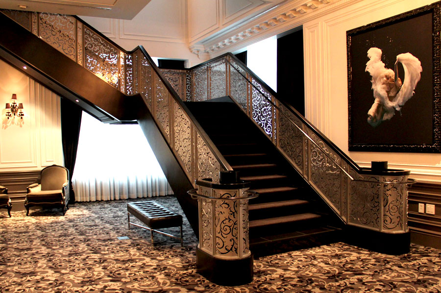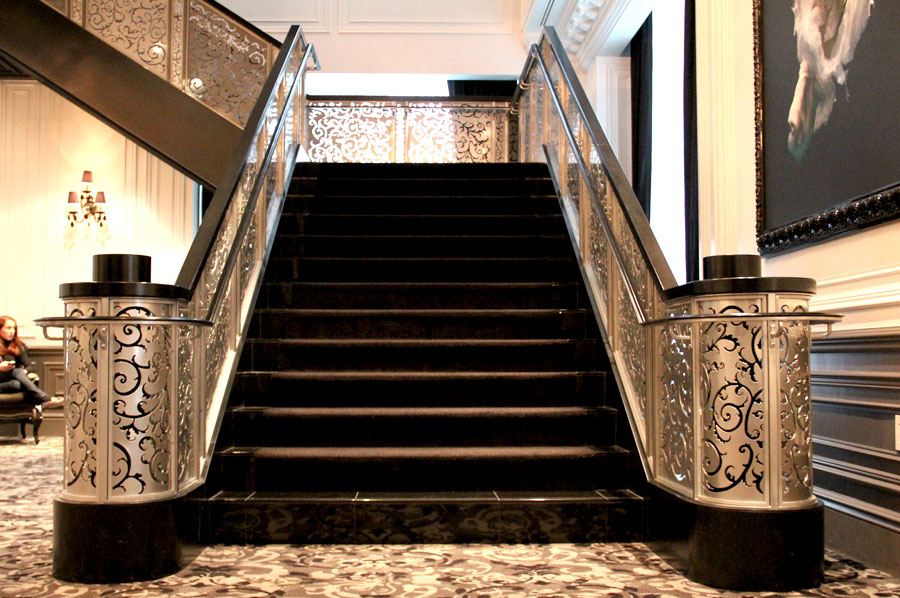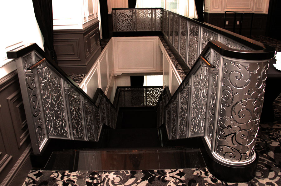 Scope: Soheil Mosun Limited was contracted to manufacture and install the monumental staircase from the 9th floor to the 10th floor grand ballroom, as well as a second custom staircase to the second floor common area.