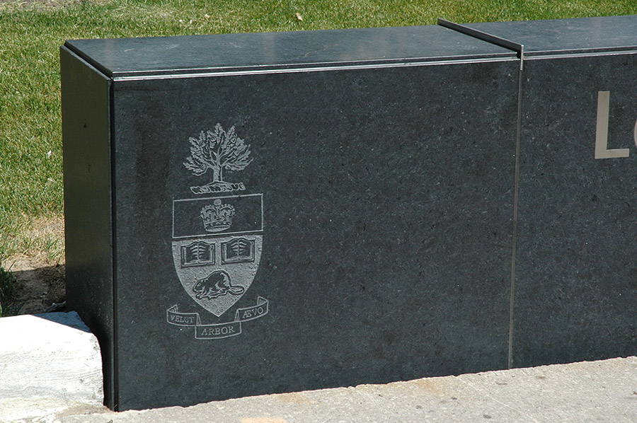 Scope: Soheil Mosun Limited was commissioned to manufacture and assemble (1) custom granite ground sign with waterjet cut, brushed stainless steel incised lettering and precision carved graphics.