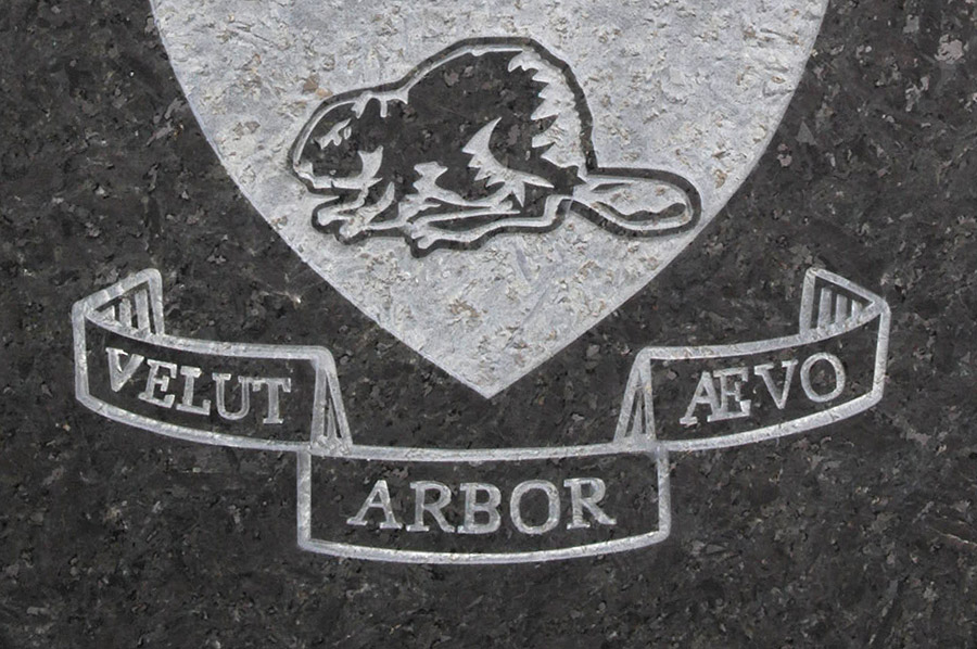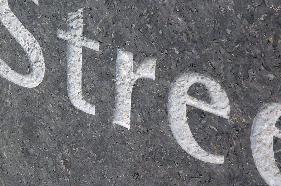 Highlights: The sign face is made of (5) 1-1/4" thick granite slabs with incised waterjet cut, brushed st. stl. lettering and precision carved lettering and graphics. This unique sign is an example of a perfect blend of texture and precision.